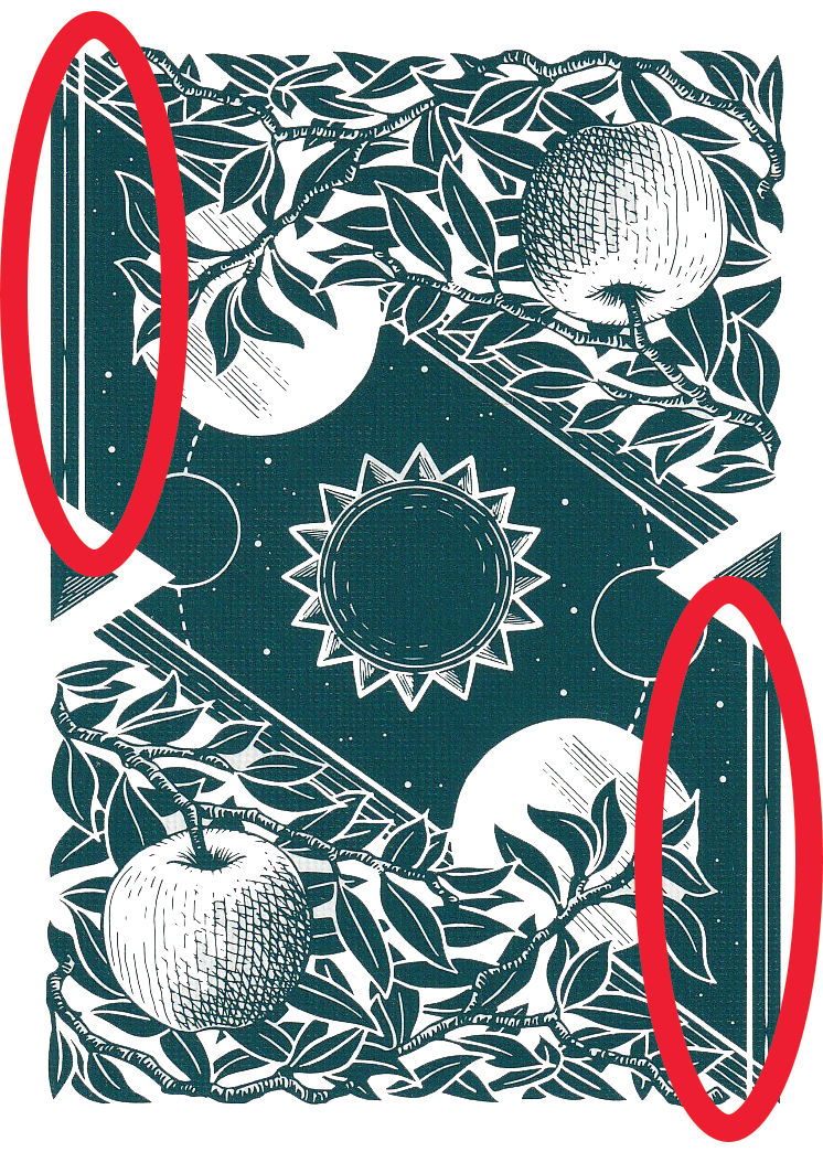 Thank you so much for purchasing and supporting the Newton Playing Cards. Hidden within its elegant and intricate back design is a devious marking system that allows you to secretly know the identity of the card without looking at its face!